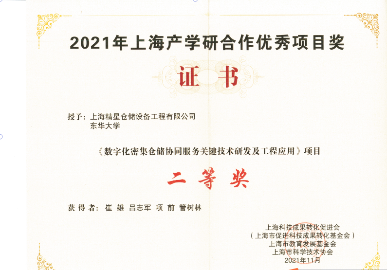 2021年12月10日,上海产学研合作优秀项目奖表彰大会在市政协举行,大会共评选出30个获奖项目。红足官网吕志军副教授团队与上海精星仓储设备工程有限公司合作的《数字化密集仓储协同服务关键技术研发及工程应用》获“2021年上海产学研合作优秀项目奖”二等奖。